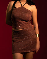 The Golden Desert Mini Skirt is where earthy elegance meets radiant glamour. Crafted from a warm brown base and drenched in glistening gold sequins, this skirt was made to move with you from golden hour to after dark.