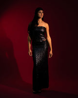 The Noir Mirage Set is crafted in black sequins with glimmering fringe details that sway with every step. The sleek silhouette and high glam shine make it your go to for unforgettable nights. It’s bold, sexy, and made to mesmerize.